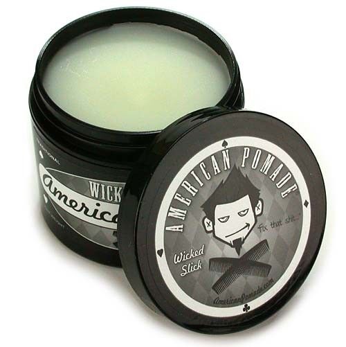 American Pomade Wicked Slick is a light weight pomade that gives shine to your hairstyle. It has a mild scent, a dash of evil, and all kinds of cool. Great on its own or as a topper to add shine over American Pomade's Original Sin, Ultimate Sin, or any other firm holding pomade or wax. 3.5oz.